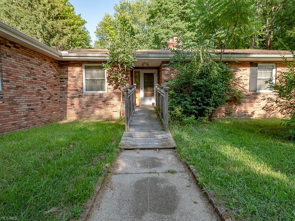 Looking for a SPRAWLING ranch that you can put your own spin on? This brick home has 3 BR's and 2.5 baths, huge eat in kitchen and FULL basement! The living room offers a brick wood burning fireplace and stone mantle. Attached to the Living Room is the dining room w/ sliders to back patio. The kitchen has lots of cabinetry and peninsula space for all large gatherings! Laundry room has plenty of storage and half bath. Master bedroom features large double closets, full bath and hardwood floors. The two secondary bedrooms have ample closet space and hardwood floors along with a full bath just down the hall! The basement is a blank palette waiting for your big ideas! Outside you will find a fenced in area, and a 2 car outbuilding with extra work space for your hobbies or toys! This home is situated on 3.03 acres of beautiful wooded property with mature trees! Great setback from the road for privacy! Windows have been recently updated! This is a great opportunity to live close to the village but still have the quietness of country living! Close to the conveniences of shopping, restaurants and minutes to the highway! Come and put the sparkle back into this gem of a home!