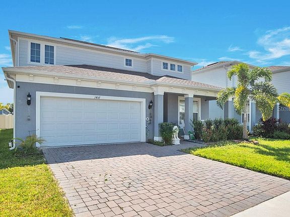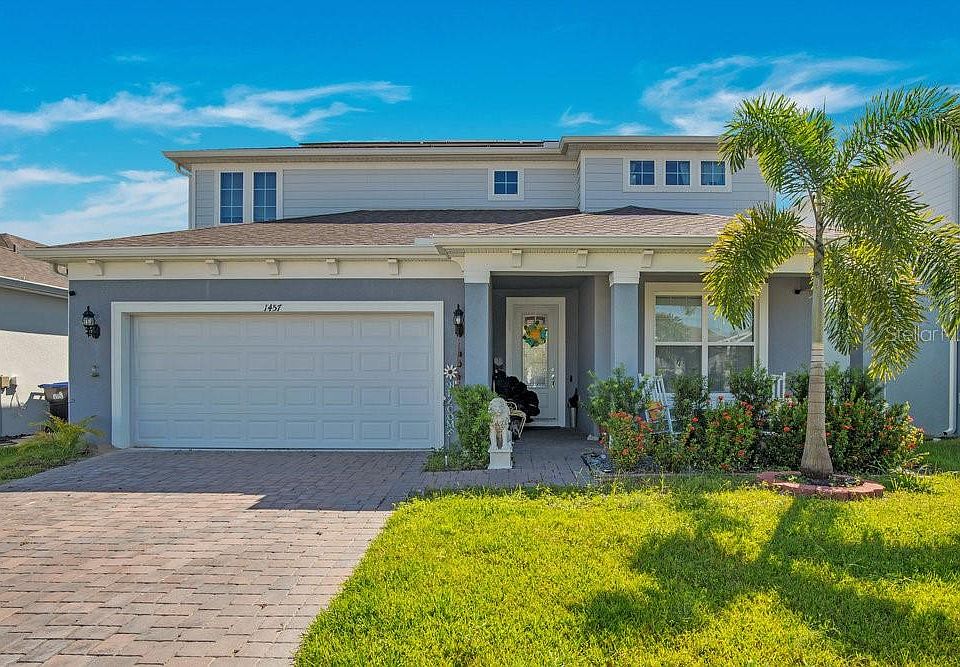 Price Improvement! Stunning Home in Savannah Palms Subdivision – Modern Comfort & Energy Efficiency! Fast Speed Internet Provided by HOA! Welcome to your dream home in the highly sought-after Savannah Palms Community! Built in 2023 by Pulte Homes, this elegant residence blends modern luxury with energy-efficient features, perfect for families, or those working from home. Gourmet Kitchen with 2 cm quartz countertops with undermount stainless sink, great for entertaining. Multi-Cycle dishwasher, Built-In microwave & electric range, 36” cabinets, walk-in pantry & ½ HP garbage disposal. Beautiful knockdown textured ceilings & orange peel walls, 9’4” Ceilings on 1st Floor & 8’1” on 2nd Floor. Durable tile flooring on the First Floor, durable waterproof luxury vinyl flooring on the second floor. Designer Front Door + steel panel garage door (Auto Opener & Remotes). Epoxy-Coated 3 Car Garage Floor. Solar Panels are on a lease & transferable to new owners. Home comes with a Water Softener System & Reverse Osmosis Filtration in the kitchen. Enjoy Seamless Indoor-Outdoor living with pocket sliders leading to the screened paved lanai. Perfect for Outdoor Dining. This home is centrally located minutes from shopping, schools, University, Airport & even the beaches. Near Waterford Lakes & Avalon. Seller willing to offer concession.