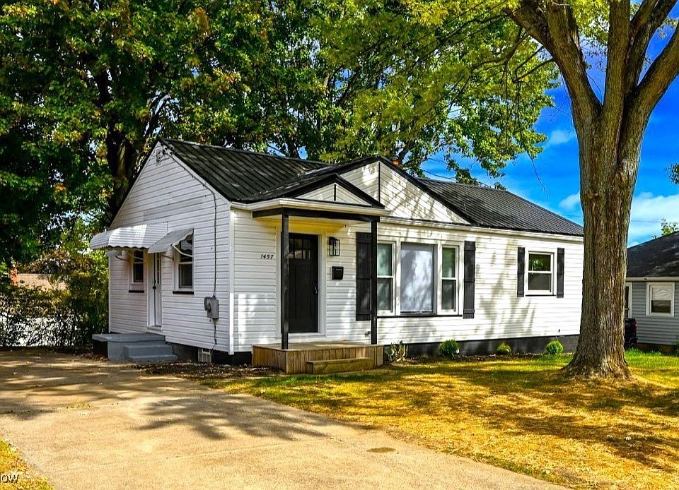 *FULLY REMODELED Move In READY RANCH In Barberton Showcases 1,395 Sq. Ft. Of Finished Living Space Including 3 Bedrms, 1.5 Bathrms & Partial Finished Basement!! *New Interior AND Exterior = Low Maintenance Living! *UPDATES <3 YEARS: BRAND NEW VINYL WINDOWS, METAL ROOF, CENTRAL AIR, BRAND NEW KITCHEN, BOTH BATHRMS NEW, LUXURY PLANK FLOORING THROUGHOUT, PAINT & LIGHTING THROUGHOUT, SHUTTERS, & More! *Walk In To The Living Rm W/Rustic Luxury Plank Flooring & Cute Breakfast Nook W/Black & Gold 4 Light Modern Chandelier For A Side Small Eat In Table Near The Kitchen *GORGEOUS FARMHOUSE Style Kitchen Boasts New Fresh White Shaker Style CABINETS w/Black Accent Hardware, BUTCHER BLOCK COUNTERTOPS, Subway TILE BACKSPLASH, Cage Ceiling + Pendant Lighting, Black Sink + Commercial Style Faucet W/Sprayer, Applianced With A Stainless Steel Dishwasher, GAS Stove & Refrigerator! *3 Bedrms 1st Floor W/Luxury Flooring & LED Lights *The Newly Remodeled FULL Bathroom Features A Fresh White Vanity W/Sink & Black Accent Faucet, Countertop, Triple Black Sconce Lighting & New Shower/Tub! Hallway Linen Closet *Want More Room To Roam? The Basement Has An Extra FINISHED ENTERTAINING Area W/LUXURY Plank Flooring, Drop Ceiling, LED Lighting ~ Making This A Fabulous Gathering Space For Sports Games And Relaxing W/Family & Friends *Newly Added Convenient Half Bath W/Toilet & New White Vanity *Large Clean Storage Area *Tree/Bush Lined Back Yard To The West & Behind For Privacy *With Remodeling Already Done FOR YOU, There Is Nothing To Do But Move In & Enjoy Immediate Possession *Parent Approved! *Live Video Virtual Tour With The Listing