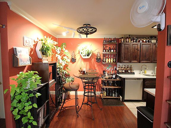 Dark wood flooringElegant quartz countertopsInviting living spaceSleek stainless steel appliancesUpdated kitchen