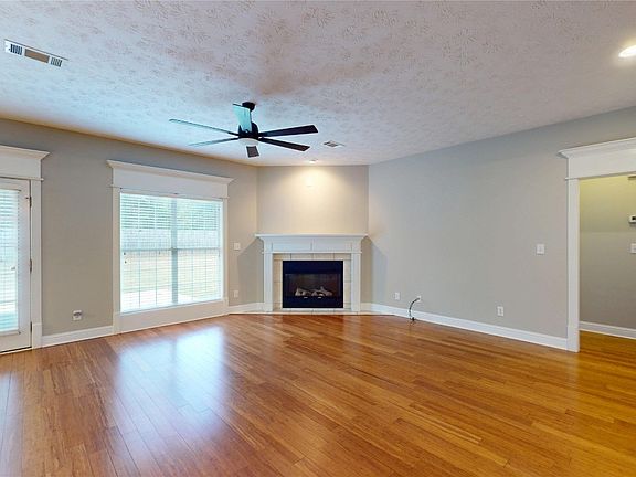 Enter onto the gorgeous wood floors into the spacious living room and dining room. This space features high ceilings, wood floors, lots of light, and a fireplace with blower. Off of the living room is a large kitchen with tons of cabinets with deep drawers, pantry, countertop space, tile floors, refrigerator and a double sink overlooking the wooded back yard! Down the hall is a half bath for guests and the laundry room-washer and dryer remain. Also, on the first floor is the supersized primary suite with double walk in closets, jetted tub, laundry cabinet, and separate shower! Upstairs are three more BIG bedrooms all with walk in closets plus a bathroom with double sinks and the shower/tub separated for great functionality for families and guests alike!!! There is also a walk in storage closet and massive walk in attic space. The entire interior has been freshly painted and has brand new carpet!! Out the back door is a beautiful yard-the house sits on a .69 acre lot- backing up to the woods for great privacy. There is a wired workshop including work bench with a garage door for easy access and a sprinkler system. This house is just waiting for YOU to call it HOME!