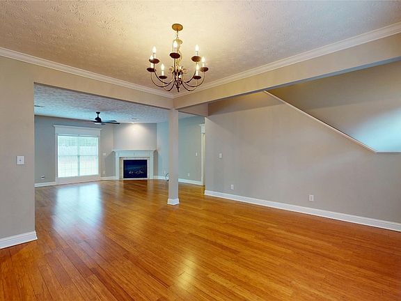 Enter onto the gorgeous wood floors into the spacious living room and dining room. This space features high ceilings, wood floors, lots of light, and an electric fireplace with blower. Off of the living room is a large kitchen with tons of cabinets with deep drawers, pantry, countertop space, tile floors, refrigerator and a double sink overlooking the wooded back yard! Down the hall is a half bath for guests and the laundry room-washer and dryer remain. Also, on the first floor is the supersized primary suite with double walk in closets, jetted tub, laundry cabinet, and separate shower! Upstairs are three more BIG bedrooms all with walk in closets plus a bathroom with double sinks and the shower/tub separated for great functionality for families and guests alike!!! There is also a walk in storage closet and massive walk in attic space. The entire interior has been freshly painted and has brand new carpet!! Out the back door is a beautiful yard-the house sits on a .69 acre lot- backing up to the woods for great privacy. There is a wired workshop including work bench with a garage door for easy access and a sprinkler system. This house is just waiting for YOU to call it HOME!