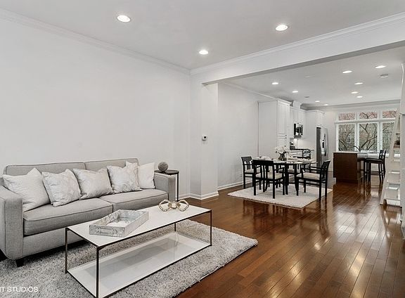 Desirable Park Row at Central Station townhome featuring two bedrooms and two and a half bathrooms. Gated front entry with brick paver patio overlooking the tree lined avenue. The spacious living room is filled with natural light from the large windows and features a gas fireplace, crown molding, and hardwood floors throughout. The open layout offers a seamless flow from the living room to the separate dining area. The beautifully updated kitchen has white custom cabinetry, granite counter tops, an eat-in island, stainless steel appliances, built-in workspace and pantry storage. Lower level family room provides even more living space, could also make a great home office or den. The master suite is spacious with vaulted ceilings, multiple closets, and ensuite bath featuring a dual sink vanity, soaking tub, and separate glass enclosed shower. Large second bedroom with an attached bath and ample closet space. Attached single-car garage. Desirable South Loop location near Grant Park, Museum Campus, the lakefront, and many wonderful restaurants, shops, and conveniences.