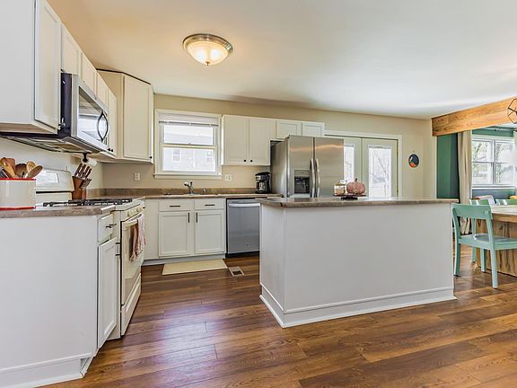Crisp white cabinetryInviting layoutAmple counter spaceMature treesFresh updated feelWarm paint tones