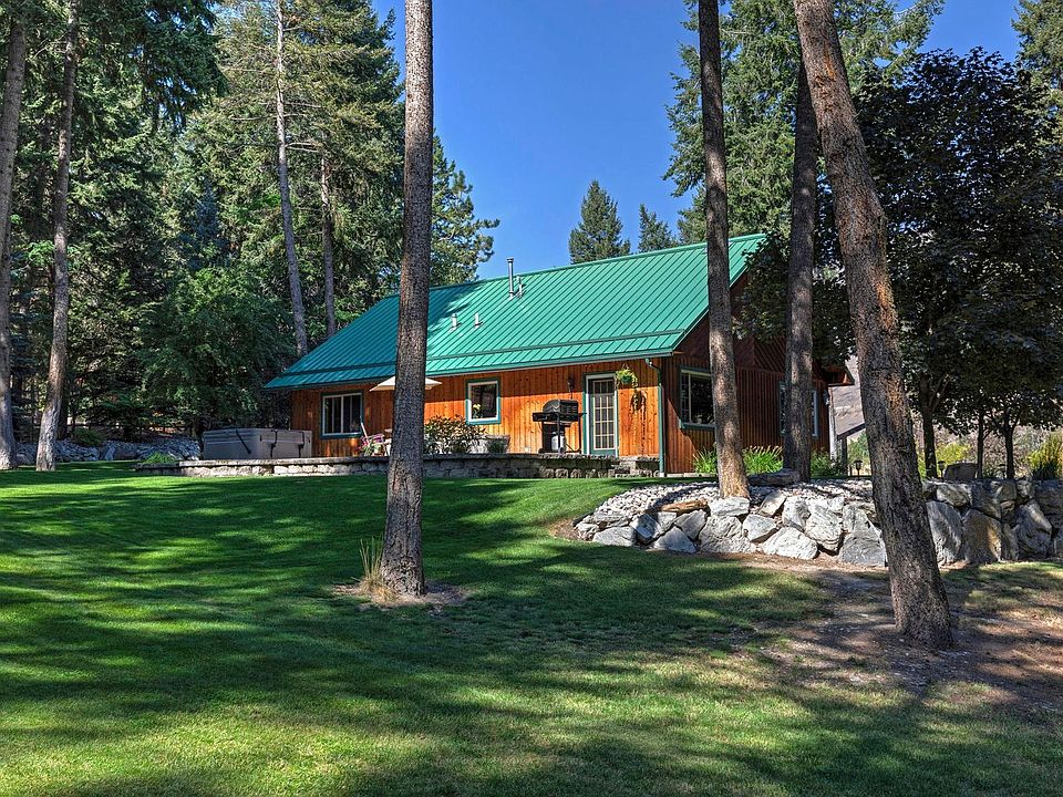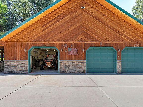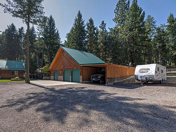 Inside this beautiful home you are greeted by an open concept floor plan. The kitchen is equipped with bar seating, a separate dining area and the living room offers high ceilings with lots of natural light. Lovingly remodeled with new windows, paint, flooring and additional insulation in 2005. The exterior has a large concrete patio on the back of the home and beautiful mature landscaping, creating a park like setting. A custom fire pit, fenced garden area, timber entry gate, with matching timber accents and fencing, create the most inviting outdoor spaces. The large oversized garage is perfect for storing vehicles, toys or use one bay for a workshop; features an additional covered parking area and space for RV parking. Garage/shop is 30'x45' heated by a diesel space heater. THERE IS NO CELL RECEPTION AT THE PROPERTY
