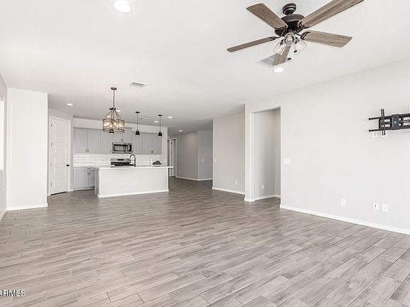 Welcome to this stunning 3-bedroom, 2-bath home with a bonus room, built in 2020 in the highly desirable Marley Park community of Surprise, Arizona. With 1,921 square feet of stylish living space, this home features upgraded tile flooring, a bright open-concept floor plan, and a spacious kitchen that flows seamlessly into the living area. The primary suite offers a luxurious walk-in shower with a sleek glass wall and a large walk-in closet. Enjoy a private, landscaped backyard perfect for gatherings or quiet evenings outdoors. Leased solar panels provide major savings on electric bills. Ideally located near parks, schools, shopping, and major freeways—this home blends modern comfort, energy efficiency, and prime location in one beautiful package.