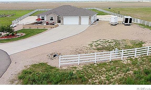 Stunning open concept ranch with spectacular views from Pikes Peak to Longs Peak, lake view of Horse Creek, and when the sunsets which are the most amazing you have ever seen, you see the twinkle of the Brighton City lights. Only minutes to I76 easy commute to downtown Denver yet country living at it finest. The east patio to watch the sunrise and listen to your waterfall, or maybe go to the West side 60 ft flag stone patio that terraces from the upper deck, and listen to the water fountain rock, professionally landscaped. 1+ acre yard is fully fenced with 4 rail. Brand new windows in the entire house with made in Colorado double pane windows installed 4/2015. Peaceful Master with 5 piece bath. Hickory floors recently refinished to perfection. Pride of ownership show in every detail of this home.