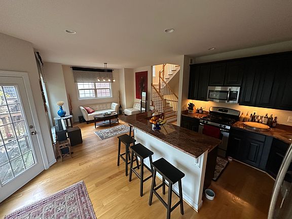 Renting the top floor of a 3-Level newer and beautifully furnished townhouse. The top floor (for rent) has a master bedroom, a furnished office, a guest bedroom, 2 full baths, and washer/dryer. The second floor (shared floor) has the main entrance, living areas, dining area, kitchen, and deck. The first floor (above ground garage level) has a smaller 4th bedroom/bath, which will be used by 1 person (owner) who will be around about 5% of the time.