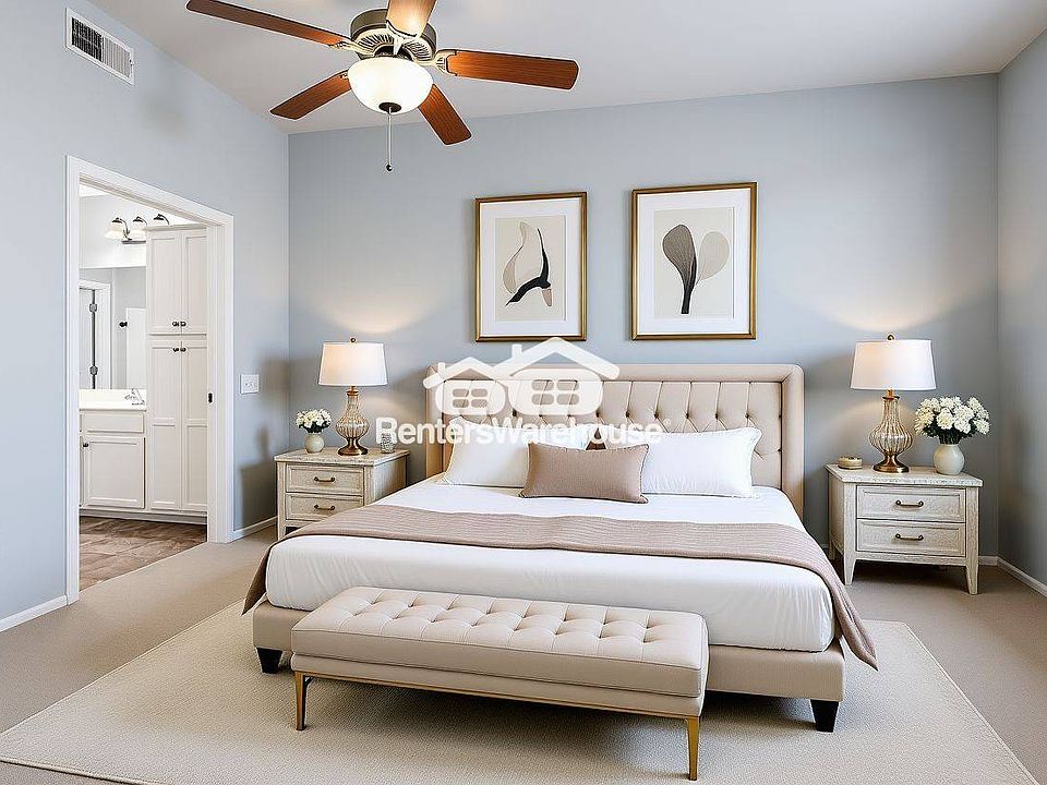 Spacious master suite with a large walk-in closet & dual-sink private bath