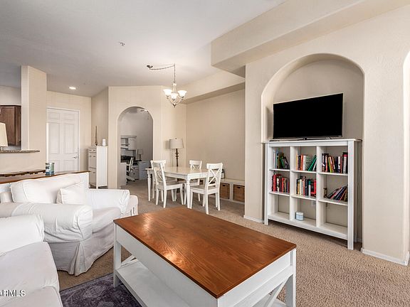 Discover resort-style living in the highly sought-after Park Place community! This beautifully maintained, fully furnished condo offers 2 bedrooms + den and 2 baths. Enjoy an open layout with tile flooring, plush carpet in select areas, arched entryways, and neutral tones throughout. The kitchen features granite countertops, staggered cabinets, a breakfast bar, and stainless steel appliances. The spacious primary suite includes dual sinks and a walk-in closet. The den is ideal for an office or flex space. Relax on your private balcony or enjoy community amenities including a pool, spa, fitness center, clubhouse, and more!