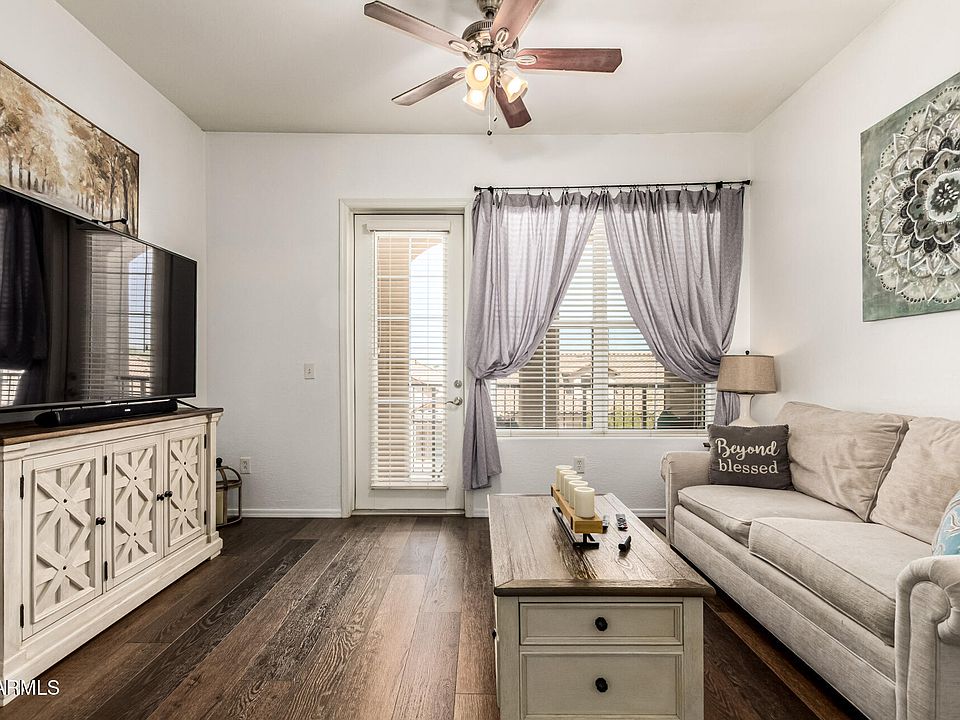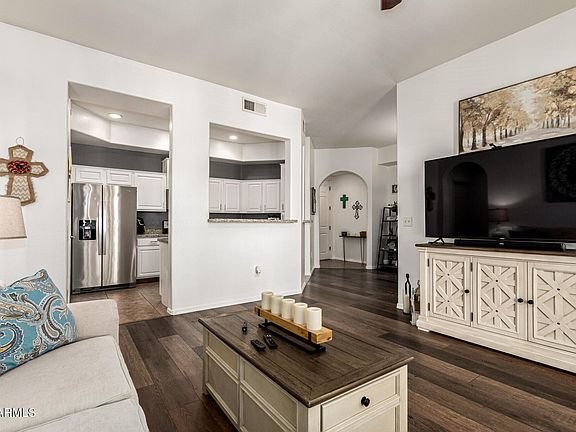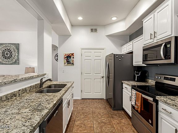 Welcome to this spacious and light-filled 2-bedroom, 1-bath condo that blends comfort and convenience. The well-designed kitchen offers generous granite counter space, ample cabinetry, and flows seamlessly into the dining area. Enjoy your morning coffee on the private balcony or take advantage of the in-unit laundry for everyday ease. The community elevates your lifestyle with resort-style amenities, including a sparkling pool, relaxing spa, clubhouse, fitness center, and even a theater room. Conveniently located near Bell Rd., you'll find shops and restaurants just minutes away—including Starbucks and Trader Joe's within walking distance—making this home the perfect balance of style and accessibility.