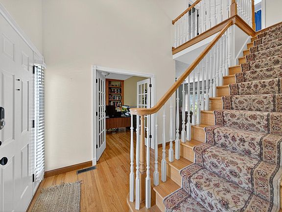 Welcome to this impeccably maintained home located in the popular Saddlebrook neighborhood, within the award-winning Northpoint, Discovery, and Penn school district. This home offers a timeless traditional floor plan featuring a two-story foyer with abundant windows that fill the space with natural light. The main level showcases open-concept living with a spacious living room anchored by a gas-log fireplace, a dining area, and an updated kitchen with an island and custom maple cabinetry that extend to the 9-foot ceilings. Rich hardwood flooring runs throughout most of the main level, continuing through the second-floor hallway and primary suite. A dedicated office with built-in shelving provides the perfect space for working from home. Upstairs, the expansive 21’ x 20’ bonus room above the garage includes a second gas fireplace and can easily serve as a fourth bedroom, with multiple options for adding a closet. Walk-in closets in every bedroom, plus a basement and three-stall garage, ensure you’ll never run out of storage space. A portion of the basement has finished walls, making it easy to complete with flooring and a ceiling to suit your needs. Step outside to enjoy the beautifully landscaped yard and large, fully fenced backyard with an open deck — ideal for entertaining or relaxing in the warmer months. This home is conveniently located near Granger walking paths, shopping, and dining. Additional features include a new roof and HVAC with All-Temp humidifier (2022), a water filtration system (2021), and a new water softener (2019). Don’t miss your opportunity to own this exceptional home — schedule your showing today!