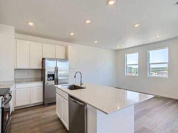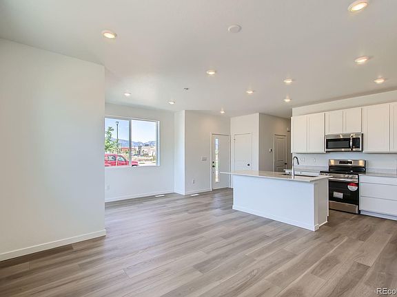 Low maintenance living in the gorgeous new Whisper Village community. Just lock up and go. This brand new 2-story townhome in a 4-plex features 3 bedrooms, 2.5 baths, great room, kitchen, upper laundry, loft, 2 car attached garage (rear alley entry) and conditioned crawl space. Gorgeous finishes and upgrades throughout including luxury vinyl plank flooring, stainless steel appliances, slab quartz counters and more. Lennar provides the latest in energy efficiency and state of the art technology with several fabulous floorplans to choose from. Energy efficiency, and technology/connectivity seamlessly blended with luxury to make your new house a home. Whisper Village offers several fabulous plans to choose from. Amenities abound in this gorgeous community including a rec center, open space, bike/walking paths, shopping, dining and entertainment options.Current monthly fee subject to change. Photos are model only and subject to change. This community is in a Metro District