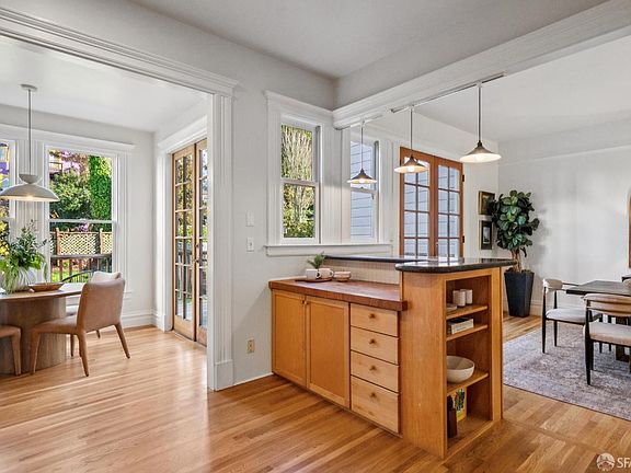Step into this charming 1905 Victorian home on one of the Inner Sunset's sweetest blocks - just moments from the vibrant 9th & Irving corridor, Golden Gate Park, and the effortless convenience of the N-Judah a half block away. Inside, the home unfolds with an inviting mix of period charm and modern livability. The formal living room, with its graceful bay windows, flows into a spacious dining room that opens through French doors to a sunny deck. The adjoining open kitchen features a breakfast bar and a fantastic casual dining area - also with French doors - creating an incredible indoor-outdoor connection to the expansive patio and garden beyond. A nicely updated half bath completes this level. Upstairs, two generous bedrooms and a full bath offer peaceful, light-filled spaces to unwind. The lower level adds wonderful flexibility with an en-suite bedroom that connects directly to a large laundry room and the spacious garage - ideal for guests, multigenerational living, or a private home office. An added bonus: additional space for parking a second car is in the driveway. Blending timeless Victorian character with the coveted walkability and energy of the Inner Sunset, this home delivers the comfort, convenience, and charm that define San Francisco living at its best.