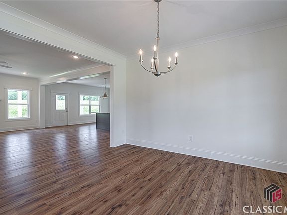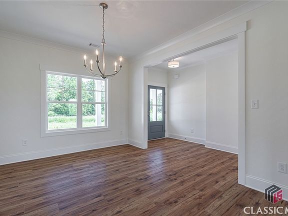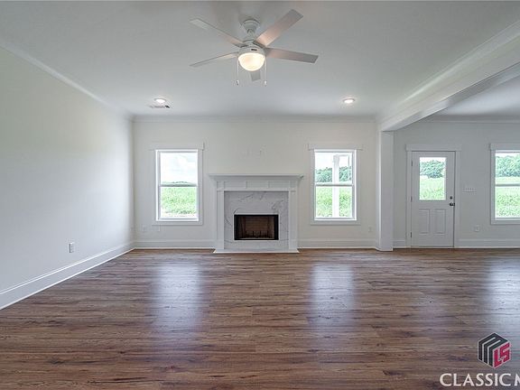 BRING YOUR HORSES AND CHICKENS! New construction on 6.53 acres with no HOA! Open kitchen concept with breakfast area and cozy fireplace makes the perfect open concept layout. The Toccoa is a 3 bedroom and 2.5 bathroom all one level (no stairs!) floorplan with laundry room, formal dining room, great room, breakfast room and fabulous kitchen with huge center island. This new build includes custom white perimeter cabinetry in the kitchen with contrasting center island, granite countertops throughout, tiled master bathroom floor and shower walls, garden tub, full hardieboard exterior siding as well as rocking chair front & back porches.