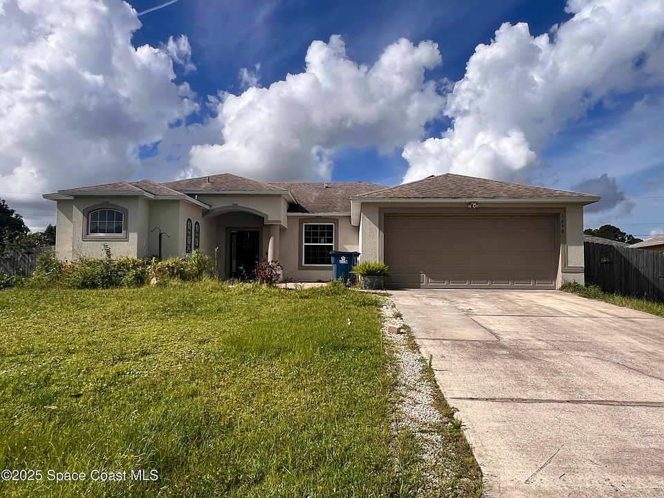 Don't miss the opportunity to rent this spacious and freshly painted 3 bedroom 2 bath home in South East Palm Bay. Features include brand new vinyl plank flooring, high ceilings, french doors to main suite, upgraded kitchen appliances, solar water heater, and a fully fenced yard filled with fruit trees. Make your appointment today!