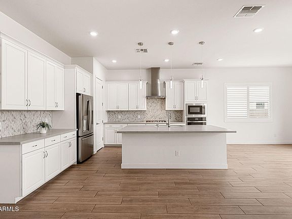 Beautiful spec home [120k in builder upgrades] featured in the highly desirable private community of Waterstone North located in Gilbert, AZ. This newly built home incorporates a subtle balance of contemporary finishes with a modern farmhouse design. The home offers 5 bedrooms, 3 full baths, an open concept 2,782 sq ft] floor plan, upgraded kitchen w/ shaker cabinetry, quartz countertops, ss appliances, spacious (eat-in) center island, gas cooking, and pantry. Additional home details will also include 9ft+ ceilings, dedicated dining space, spacious [great room] living space, tile plank [pale oak wood look] flooring, modern plumbing/lighting fixtures, soft water system, and lots of windows offering great natural light throughout the living spaces. The master retreat boasts spacious sleeping quarters, an ensuite w/ dual vanity, large step-in shower, and walk-in closet. Lastly, the home features a 3-car tandem garage, highly desirable green-belt lot [added privacy w/ no neighbors behind your premises] , backyard featuring an extended covered patio space, artificial turf, and low maintenance landscaping--perfect for entertaining family and friends. Waterstone North is a private gated community offering residents scenic walking paths, green spaces, playgrounds, and a heated community pool & spa. Community is within close proximity to downtown Gilbert, Chandler Fashion Square, and Gilbert Mercy Hospital.