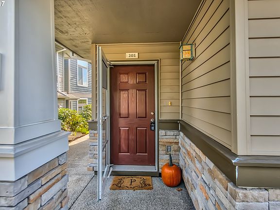 OPEN HOUSE 10/15 12-2pm! Quiet upper level corner condo at dead end street next to park. Best location in development. Across street from Progress Ridge Town-Square, Cinetopia , New Seasons & Big Al's. Clean & modern 2 bed/2 bath w/garage & storage. New paint, new blinds, new sink, brushed nickel fixtures, upgraded carpet pad, deck resurfaced, gas fireplace, AC, 10" ceilings, extra storage & private deck. Views of trees & skyline.