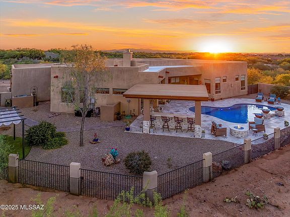 Luxurious, resort-style desert living, indoors and out. Nestled in the exclusive, gated Coyote Creek neighborhood, this breathtaking luxury residence offers elegance, comfort and truly impressive outdoor living spaces. Enjoy phenomenal panoramic mountain views from every angle, a brand new oasis-like pool with spa-like water features, and a very spacious travertine pool deck, all completed in 2024. The outdoor space is an entertainer's dream, featuring citrus & fig trees, a cozy fire pit, a welcoming, large front courtyard with fountain, and professional landscaping, irrigation and lighting throughout. Inside, find a brand new custom kitchen, soaring ceilings, light, bright spaces and gorgeous views from large windows. Large 3-car garage with high ceilings and epoxy floor. A must-see!