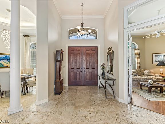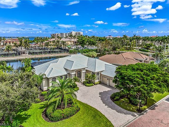 Experience the pinnacle of luxury living with this exquisite lakefront custom estate home in the prestigious gated neighborhood of Edgewater within Gulf Harbour Yacht & Country Club. Indulge in the IMMEDIATE ACCESS to club's amenities with available golf membership for purchase.No wait. This remarkable home with Travertine floors boasts a spacious floor plan, perfect for entertaining. 4 bedrooms, the primary suite is complete with a sitting area & ensuite bath. The gourmet kitchen, a chef's delight, boasts a butler's serving & storage area. Step into the relaxing atmosphere of the pool area, offering outdoor entertaining options with stunning lakeside views from the sparkling negative edge pool & spa. 2018 New Strong Lanai Cage. New Roof 2021. Conveniently walkable to all amenities, clubhouse with indoor/outdoor dining, fitness-sports center, golf, tennis, marina along the Caloosahatchee River & Intra-Coastal waterway. Prime location offers proximity to restaurants, shopping, beaches, medical facilities & SW Florida International Airport.Choose the custom lakeside home that aligns perfectly with your lifestyle. Your dream of luxury living awaits! garage accomodates 2 car + cart.