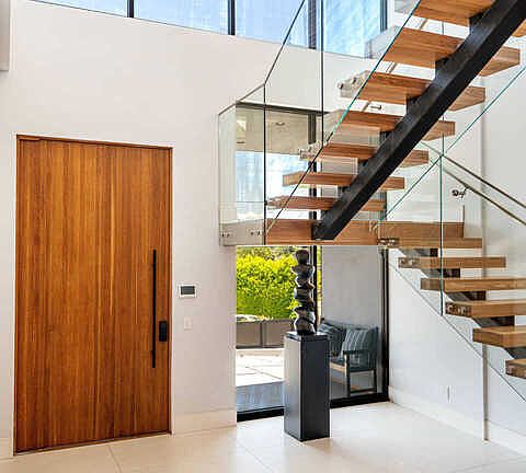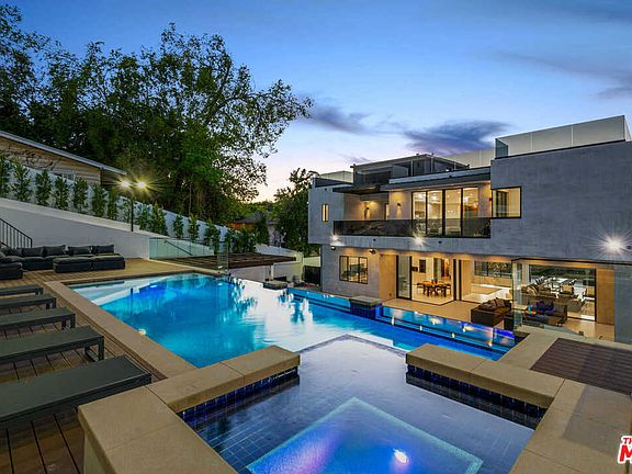 Exquisitely designed and newly constructed estate in the highly coveted Sherman Oaks, thoughtfully produced contemporary architecture creates a space thats as functional as it is appealing. The home has five large bedrooms, and seven bathrooms, and is comprised of approx. 8,000 square feet. Floor to ceiling windows illuminate tons of natural light throughout the home. The living spaces include a large, open living room completed with built-ins and pocket sliding doors, giving off a spacious, indoor-outdoor flow perfect for California weather. The upscale dining room is completed with a gorgeous bar, ideal for entertaining guests. These rooms open up to the sleekly designed kitchen, boasting a large center island, flushed Italian imported cabinetry, state of the art stainless steel appliances, furnished with waterfall marble slabs. The pocket sliding glass doors open up to a brilliantly designed, private outdoor space, displaying covered outdoor seating areas, a large hardscape area.