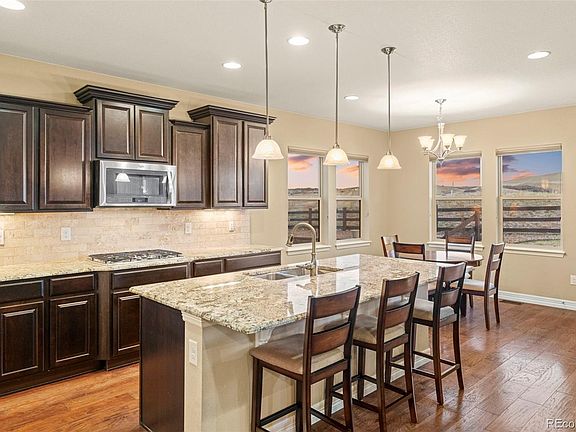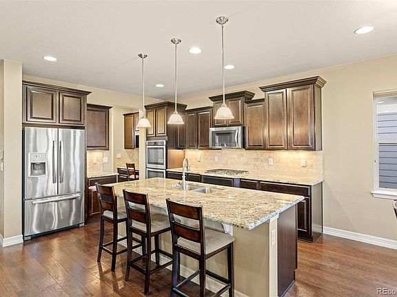 $25,000 Price Improvement! Nestled in the picturesque Heirloom Neighborhood of Parker, Colorado, this beautiful ranch-style home offers a perfect blend of luxury and comfort. Featuring 3 bedrooms (including 1 non-conforming office), 3 bathrooms, and 4,786 total square feet (2,393 finished) this residence features exquisite details and thoughtful design throughout. Step inside to find hardwood floors, 8' doors, and custom Hunter-Douglas blinds accentuating the bright and airy living spaces. The gourmet kitchen is equipped with 42" cabinets, undermount lighting, granite countertops, a large center island with seating for 4, a breakfast nook, walk-in pantry, 4-burner gas cooktop, French door refrigerator with freezer slider, and double ovens with convection and microwave! The spacious family room is highlighted by a gas fireplace with a mantle and large windows offering abundant natural light. An elegant formal dining room with a butler's pantry is perfect for hosting guests. The private primary suite is a tranquil retreat, featuring spectacular views of the open space behind the home, tray ceilings, a 5-piece primary bath with a large soaking tub, glass shower with bench, dual vanities, and a large walk-in closet. Private guest suite with a full ensuite and separate linen closet, a main floor study or non-conforming bedroom with glass French doors, a main floor laundry room/mudroom, and a powder bath. The massive 2,393 square foot basement is open and ready for your custom finish, stubbed for a bathroom and shower, and offers plenty of room for additional bedrooms, a recreation room, bar, etc. Outside, the home features a Colorado room (covered patio) with views of the unobstructed open space. A new roof and exterior paint were completed in 2023. The 3-car garage features an epoxy floor and high ceilings for suspended storage. Close to restaurants and shopping, this home is meticulously maintained! 2 Blocks from the Heirloom Pool and Clubhouse!