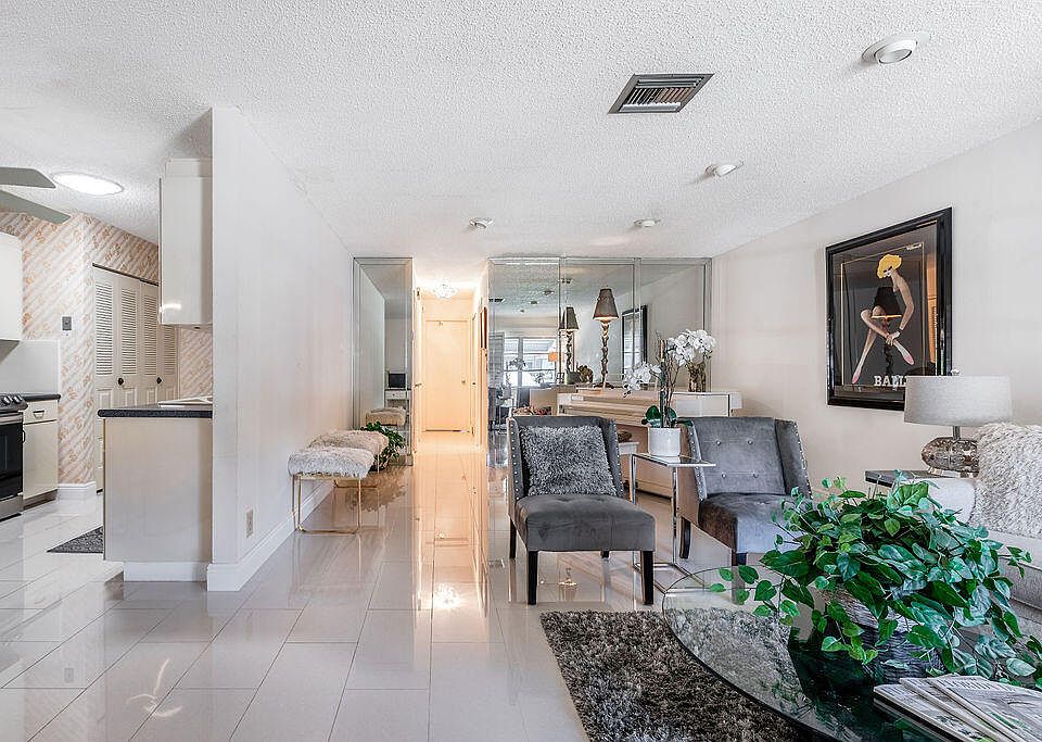 This is an ESTATE SALE - beautifully renovated lake front villa in the vibrant Delray Villas. Renovated with large regtangular porcelein tiles in living areas, beautifully renovated spa-like bathrooms - 2nd bathroom has a solar tube for extra light. Kitchen with high gloss flat panel cabinets. Enclosed patio with window AC for additional living space overlooking a gorgeous lake view. SOLD FULLY FURNISHED AT BUYER'S DISCRETION. - MOVE IN READY HOME. AC is 2021 and there is a newer tankless water heater, saves on electric bill, constant hot water. So much for a VERY low HOA fee.Amazing location, close to all Delray life.There is an assessment for new roofs and other work planned. Also, a master association assessment to revamp the recreation center. SELLER IS READY TO NEGOTIATE.