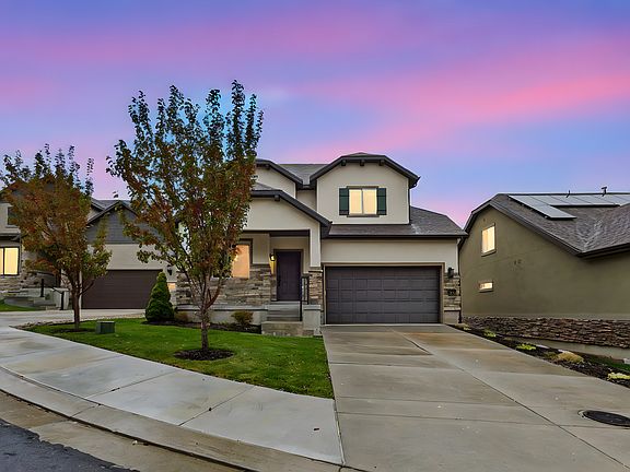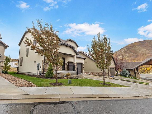 Welcome to a rare opportunity to live in one of Draper's premier million dollar neighborhoods, Montreaux, located in the heart of Corner Canyon. This home offers breathtaking views both day and night, with direct backyard access to an extensive network of hiking and mountain biking trails. Meticulously cared for and maintained, this residence feels like new and stands out as one of the most pristine homes in the area. Inside, you'll find elegant granite countertops, premier finishes, and a layout designed for both comfort and style. Enjoy easy living with the HOA covering all landscaping, allowing you more time to relax and take in the surrounding beauty. Situated above the city, residents enjoy cleaner air and noticeably cooler summer temperatures, all within top-rated school boundaries and just five minutes from I-15. Experience the perfect blend of convenience and tranquility in your private retreat away from the city hustle and seasonal inversion. Square footage figures are provided as a courtesy estimate only and were obtained from county records.  Buyer is advised to obtain an independent measurement.