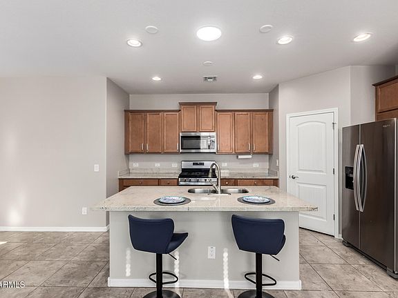 Located in the heart of Marley Park, this 3-bedroom, 2-bath home built in 2020 blends modern comfort with energy efficiency. The kitchen features granite countertops, stainless steel appliances, and solar tubes that bring in natural light. Solar panels help keep energy costs low with little to no electricity bills and provide a year-end credit. The open layout makes everyday living and entertaining easy.
