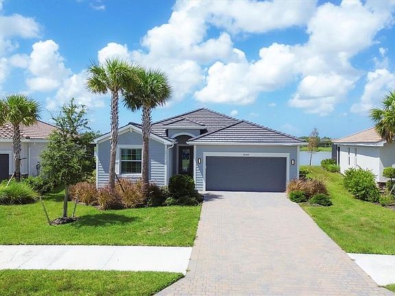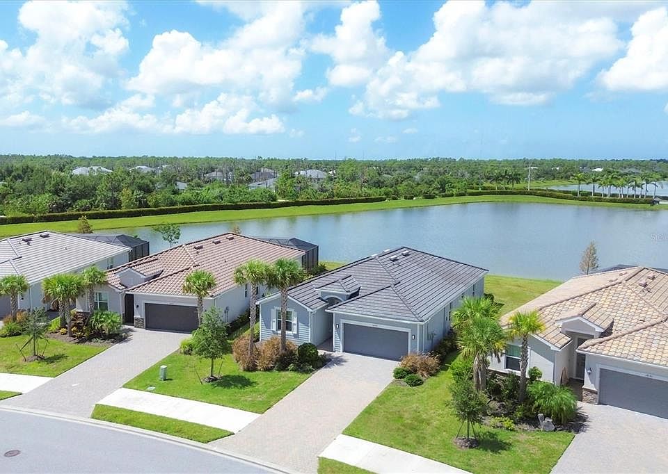 Welcome to a rare opportunity to own in this new sold out waterfront community with only 165 homes located on 99 beautiful acres with water and pond views everywhere and NO CDD!! This popular Trevi model features 4 bedrooms and 3 full bath home has many builder upgrades including white cabinet package, tile through out the home, granite in bathrooms. Additional exterior up grades include CWS impact windows, PGT impact slider, screened lanai , gutters around whole home and beautiful landscaping completes the curb appeal of this home. Upon Entry in the home you will be welcomed in a spacious foyer that welcomes you to step into the heart of the home. Tile throughout and a warm light neutral color interior lends the perfect backdrop for your designer inspirations. The spacious kitchen opens nicely to both the dining room and family room with plenty of informal seating at the large island. The master is ample size with two large walk in closets a large master bathroom with his and her sinks, linen closet, and separate water closet. You'll look forward to starting or ending you days in this large shower with a rain head attachment or a handheld attachment for your showering pleasure. Two additional bedrooms at the front of the house split a second bathroom while a fourth bedroom has it's own full EnSuite bath. The serene is a great way to spend mornings, afternoons and evenings taking in the amazing wildlife that fishes the large pond in your backyard retreat. We invite you to enjoy the attached tour and schedule your showing of this stunning home today.