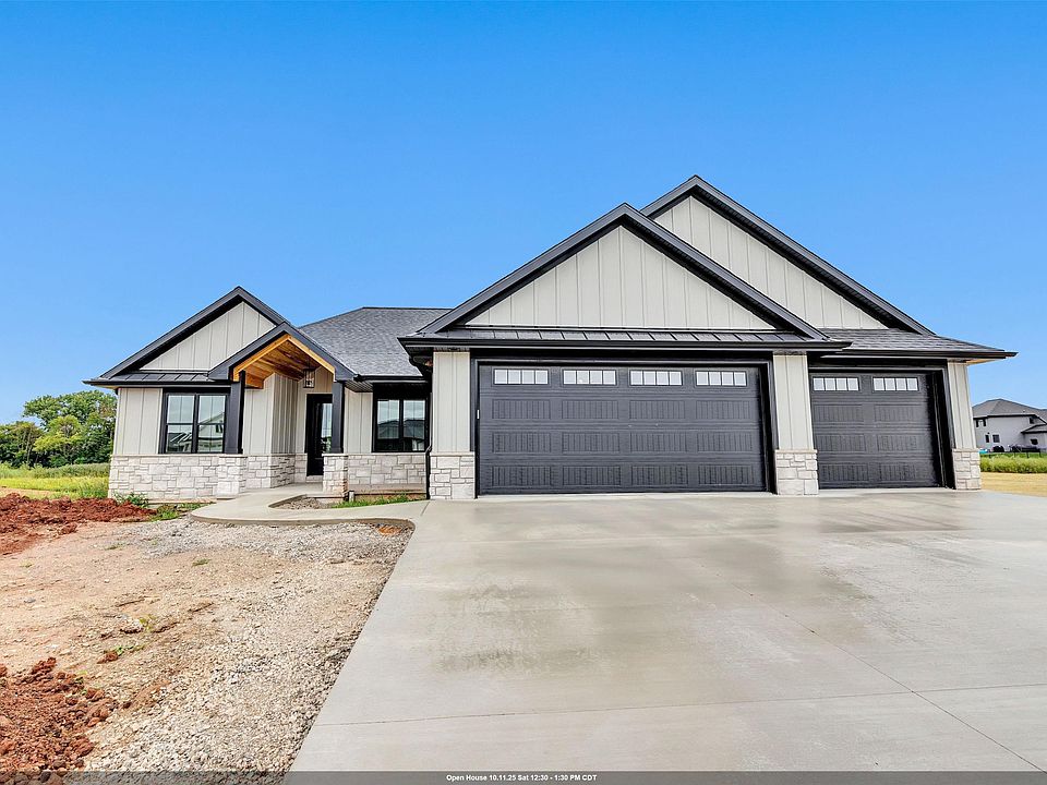 Stunning new-construction ranch on a 1.17 acre wooded lot in desirable area w/ over 2200 sq. ft. Zero-entry design w/3 BR, 2.5 BA + office for flexibility. Showstopper kitchen boasts white cabs, herringbone backsplash, quartz counters, SS appliances, massive island & walk-in pantry. Open dining flows to LR w/trey ceiling, fan & gas FP w/stone surround. Lg windows flood w/natural light + serene views. Covered porch extends living outdoors. Luxe primary suite w/dual vanities, tiled shower & huge WIC connected to laundry. Unfinished LL w/3 egress windows + stubbed bath = endless options. Near parks, dining & major routes yet private & peaceful. The perfect blend of modern design, thoughtful layout & everyday luxury!