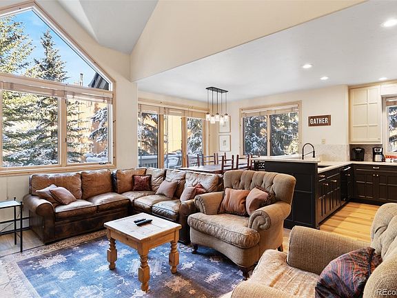 This 3-bedroom, 3-bathroom condo in Keystone is perfectly nestled along the Snake River, offering a year-round haven for mountain enthusiasts. During the winter months, enjoy the convenience of a short walk to the Peru Lift, getting you on the slopes in minutes! In the summer, take a peaceful stroll along the river or hike to the summit of Keystone Mountain to experience the area's natural beauty. Inside, the townhome combines style and functionality with marble and leathered quartzite countertops, new stainless steel appliances, remodeled bathrooms, and updated flooring throughout. After a day of adventure, unwind in the private hot tub on the back deck while listening to the tranquil sounds of the river flowing nearby.