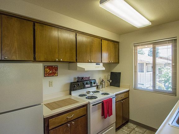 Studio: Generous living area, bathroom, and full size closet. Full kitchen, includes lots of cabinet space and a garbage disposal. The living area is carpeted and there is vinyl in kitchen and bathroom. Unit features a gas bbq located in front of their apartment.