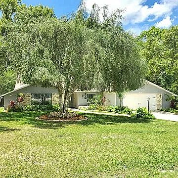 One or more photos have been virtually staged. Welcome home to your new entertainer’s paradise, located in the sought after neighborhood of Linden Estates. Nestled on a beautifully wooded sprawling acre lot, this home offers a picturesque setting that seamlessly blends indoor and outdoor living. Nothing to do but move in. This modern farmhouse style Oasis gives you a desired open floor plan, split bedroom, oversized rooms, heated salt-water pool, and more. As you enter there is a sunk-in Den that has a huge custom window that brings in tons of natural light. The kitchen has custom cupboards, stainless steel appliances, farmhouse hardware, and farmhouse sink that overlooks the Living and Family room. The spacious Family room has an 11-foot ceiling and sports a wood burning fireplace, with a blower, that has been redone beautifully w/ shiplap and a new mantel. Alongside the fireplace there are 2 sets of French doors leading outside to the Florida room where you can peacefully enjoy your morning coffee with the variety of birds and squirrels, anytime of the year. This home feels like you’re in the secluded woods as you are surrounded by indigenous trees, and no one will build ever build behind you. Ready for dinner? Well, sit at the bar in the kitchen or sit in the Dining room which has a custom window as well and is adjacent to the kitchen for easy serving. Or sit outside in the screened lanai or two-tiered deck. Come see the Master bedroom. As you enter through the double doors you have a huge walk-in closet, an ensuite bath with double sinks, farmhouse hardware, an accented wall with shiplap and access to the pool area. The other 2 bedrooms are large and share 2nd bath that has a walk-in shower, double sink vanity and access to the pool! Indoor Laundry. Walk out of the Florida room to a two-tiered sunny deck for chilling, grilling and entertaining. The oversized back yard has a fire pit and a 10 x 12 shed. A private outside patio is located off the Florida room. Moving on to the garages, you have a 2.5 car attached. Then a huge BONUS is the 2nd 3-car detached garage (built in 2016), which is a 30 X 30 block structure and currently is the game room. New epoxy flooring, garage door openers, paint and a double electric roll down screen. Plenty of room for your extra equipment. Keep it as is or create an In-Law suite. What's all been done in 2021 New Roof, A/C New motor & pool heater installed. New kitchen, New Laminate Floors in ALL bedrooms. Freshly painted inside in 2022. The location of this home is in a beautiful rolling hills country-like neighborhood where there is NO HOA! The home is walking distance to Veterans Memorial Park! The Park will be adding a new, future playground area for the kiddos and another park, Anderson Snow, is adding a Splash Park. Come see for yourself!