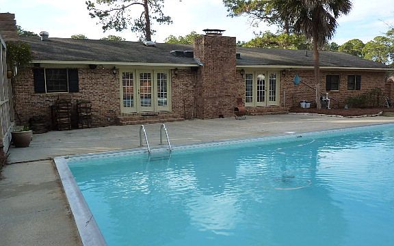This home will surprise you when you go inside! Wood floors, open floor plan, oversized wood burning fireplace, surround sound stereo system, soothing colors and more are very appealing. The master bedroom features two closets and a very nice master bath with jetted tub and large tiled shower. In the backyard, you'll find a brick fence offers lots of privacy for the gardens and inground pool. At night, many of the trees and landscaping feature up-lighting. There's even a pool house/guest suite with bath and kitchen.