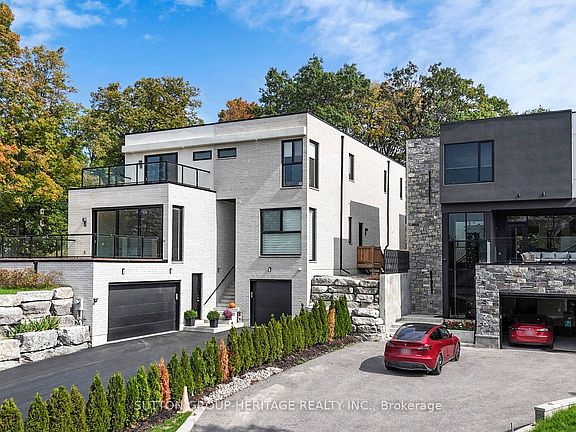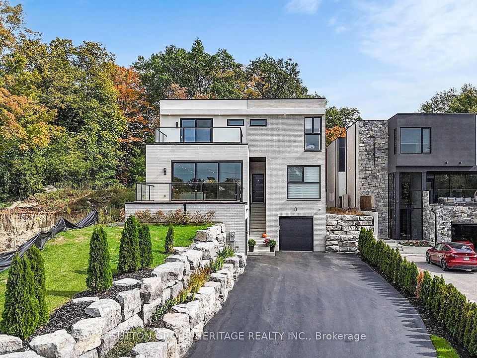 This stunning 5-bedroom, 6-bathroom modern and sleek home is nestled in one of Pickering's prestigious neighborhoods offering luxurious living at its finest, and it is roughed in for an elevator and will be installed if requested. This contemporary and elegant home offers 5100 sq ft of open concept living on the main and second floor. The main floor has 11.5ft ceilings and 10ft ceilings on the second floor. Every room in this home has lots of natural light that comes through the upgraded aluminum windows and feather touch Aluprof aluminum sliding doors. The sleek and clean lines along with high end finishes make this home perfect for both intimate gatherings and large-scale entertaining. Each room has been thoughtfully crafted with top-of-line materials, from the gourmet kitchen to the spa-like bathrooms that give you a sense of tranquility and luxury. The grand primary suite is a highlight, featuring a private balcony, a spacious walk-in closet, and a spa like ensuite bathroom with a soaker tub, separate dual vanities and a large 8'x4' seamless glass shower with 2 rain shower heads. Each additional bedroom is generously sized, with ample closet space and access to beautifully appointed bathrooms. The home also boasts a fully finished lower level with its own separate entrance, 3 generous sized bedrooms, a 4 piece bathroom, 9' ceilings and a full kitchen that is open to the living area. Outside, the meticulously landscaped yard offers a private oasis. Off of the kitchen you have a 29'x16' deck perfect for relaxation or entertaining, there is also a natural gas hook-up for your BBQ. The home's location is located in an upscale neighborhood and is close to schools, dining and shopping, making it an unparalleled opportunity for those looking for a blend of modern luxury and exclusive living. This home is in one of Pickering's sought after areas. There are too many features to list, please see attached "Feature Sheet" for more details.