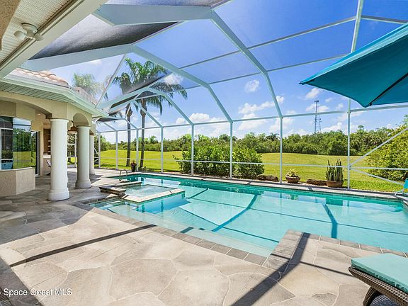 Nestled on the exclusive Southpointe Ct. in Balmoral at Baytree, this stunning custom home blends privacy, luxury, and breathtaking outdoor living. Exquisite architectural details and high-end finishes enhance the spacious layout, while a double-door entry opens to sweeping views of the sparkling pool and 16th fairway. The open-concept family room, anchored by a cozy gas fireplace, flows seamlessly to the screened lanai—an entertainer's dream with a summer kitchen, lap-size pool, spa, and cabana bath. The chef's kitchen overlooks this outdoor oasis. The primary suite boasts a spa-like bath and custom closets, while a split floor plan offers two guest rooms with a Jack & Jill bath, a 4th bedroom/office, and a full cabana bath. Upstairs, a versatile loft with an ensuite bath and private balcony adds to the home's appeal. An oversized 3-car garage completes this exceptional retreat in a premier golf course community.