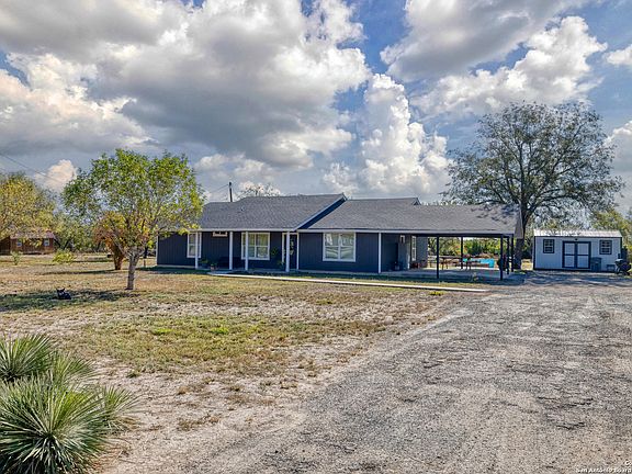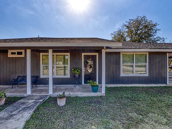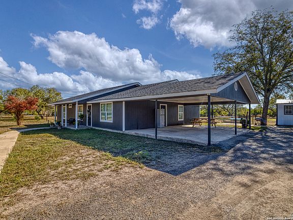 1459 Westward Trail is a renovated four-bedroom, two-bathroom home on 3.784 unrestricted acres in Uvalde Estates, offering a peaceful country setting less than five miles from Uvalde city center for convenient access to shopping, dining, schools, and healthcare. Built in 2002 and updated throughout the past two years, the home features just over 2,000 square feet of living space with a new roof, windows, doors, paint, flooring, faucets, fixtures, and a brand-new septic system, with water supplied by Windmill Water Supply Co-Op. The interior includes ceramic tile flooring, fresh trim, a dedicated master suite with a large closet and private bathroom, a formal dining area with a vaulted ceiling and crown molding, and a spacious kitchen with a breakfast nook, ample cabinetry, plenty of counter space, and a gas stove. Three remodeled guest bedrooms, an updated second bathroom with a tub-shower combination and new vanity, and a well-planned laundry area with additional storage complete the layout. The property includes two storage buildings, an attached two-car carport, a long driveway for ample parking, and several mature trees. Only about one-third of the acreage is cleared for the homesite, leaving over two acres of native brush behind the home ideal for additional construction, a home business, or commercial use thanks to the unrestricted land.