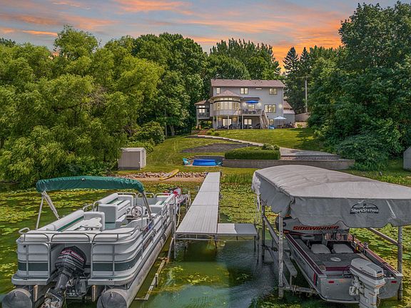 LUXE LAKE LIVING! This ethereal setting on Lake Mazaska is plucked from the pages of a fairytale! Gorgeous 2-story home with 100 feet of shoreline. Peaceful, colorful, tranquil ambiance on a half-acre. Slice of heaven with authentic resort vibes. EVERY room in the house offers breathtaking lake views. The large kitchen with adjoining sunroom is open to the main living area. Luxury details throughout, including quartz, granite, wood flooring, & more! The cozy living room offers spectacular panoramic views from the incredible wall of windows. Snuggle up next to the fireplace with a glass of wine on chilly evenings. Large main floor master bedroom with private bath. Walkout lower level with wet bar entertaining area. 2 decks with breathtaking lake views. Beautiful brick patio with hot tub. Picturesque custom landscaping. 80-foot dock with boat lift. 3-car attached garage. Newer roof, newer siding, & newer windows. Make every single day feel like a vacation!