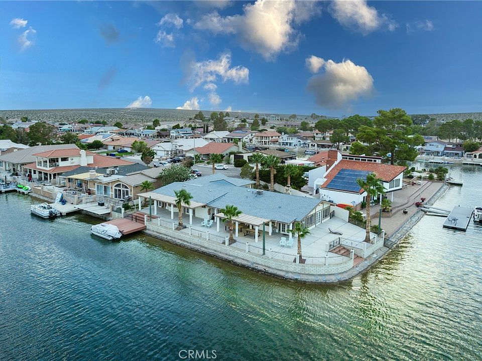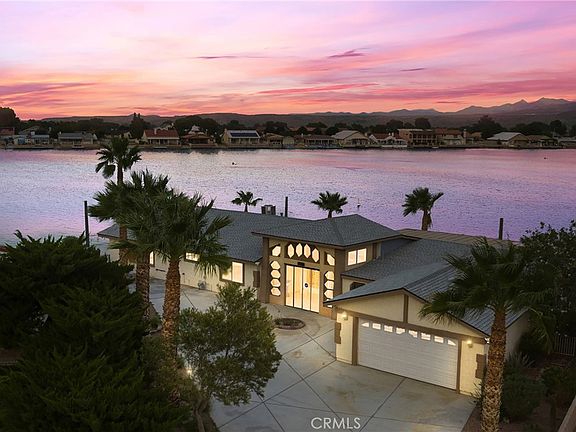 "If You Can Dream It, You Can Make It Happen" Welcome to 14597 Mast Lane in Silver Lakes (The Jewel Of The High Desert), in the community of Helendale California. RARE POINT LACATION. On the South-East-Point of Mast Lane with 270 decrees of OPEN WATER and Mountain Views. This stunning residence offers an exceptional living experience, epitomizing elegance and comfort. Some of the remarkable features of this remodeled circa 1977 home begin with the vestibule that opens to the expansive Foyer. A statement for certain from floor to ceiling, and attention to detail you will appreciate. The interior seamlessly blends modern amenities with timeless elegance, offering a warm and welcoming ambiance. 4-large bedrooms, 3 of which have Private En suite baths. The 4th bedroom with stunning water views through the French doors to the patio, can be used as an inspiration room or bedroom. Half bath is just across the hall. THE HUB AND HEART OF A HOME is the Kitchen and Living Room. Enter the inviting HUGE OPEN FLOOR PLAN for Living, Dining and Eating area. Vaulted and Beamed Ceiling adds to the relaxed ambiance for your gatherings. Again, designed with meticulous attention to detail. 5-French Doors to the outside provides a perfect view vantage point to appreciate the serene beauty of the surrounding landscape. 173-foot of sea wall patio wrapping this upscale home can also support an infinity pool if you desire. Take advantage of the 2-ports to the sparkling water. One of them with a private Trex dock to your boat of desire. SMELL the fresh air. VIEW the sparkling water, natures mountains and clear sky with puffy white cotton like clouds, and HEAR the soothing sound of quiet. **New Roof put on in October 2022** Property will accommodate. Seller now offering package opportunity. $750,000 'turn key' with ALL appliances, furniture and Boat with boat trailer included.