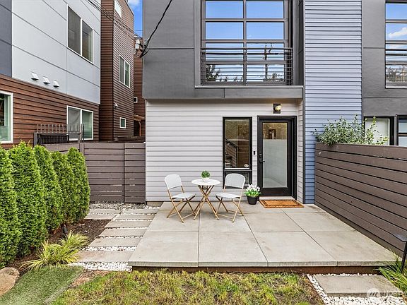 Discover modern living in this 2 bedroom + office nook, 2.25 bath townhome in Cap Hill, where style meets comfort in a vibrant setting. Open floor plan connects living & dining spaces, highlighted by a dramatic roll-up wall that welcomes the outdoors in. Modern kitchen features quartz counters, SS appliances, and generous island with breakfast bar. Expansive windows fill the interiors with natural light. Modern, chic architectural details throughout. Primary suite offers a cozy retreat with en-suite bath and generous closets. Second bedroom and bathroom, and laundry all on the same floor. Versatile lower-level flex space adapts to your lifestyle, while attached garage adds convenience. Easy access to DT Seattle, shops, dining, and freeways.