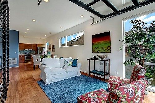 Move-in Ready. Open Great Room with roll up, windowed wall to let the outside in. Light is everywhere. Ample space to entertain. Spacious kitchen w/Caesarstone counters, stainless appliances & gas cooking. Upper level has 2 generous sized bedrooms, great closet space and a bath a piece. Also W/D, new carpet. New paint throughout. Attached garage & welcoming entry w/large closet. Raised bed garden - planted. No HOD's and only 1 attached unit.