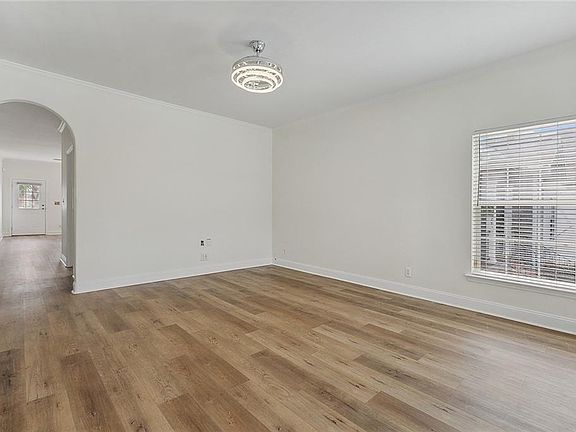 As you enter, you'll be greeted by the spacious living room adorned with sleek new luxury vinyl planking and freshly painted walls, creating a warm and inviting atmosphere.