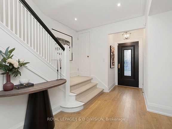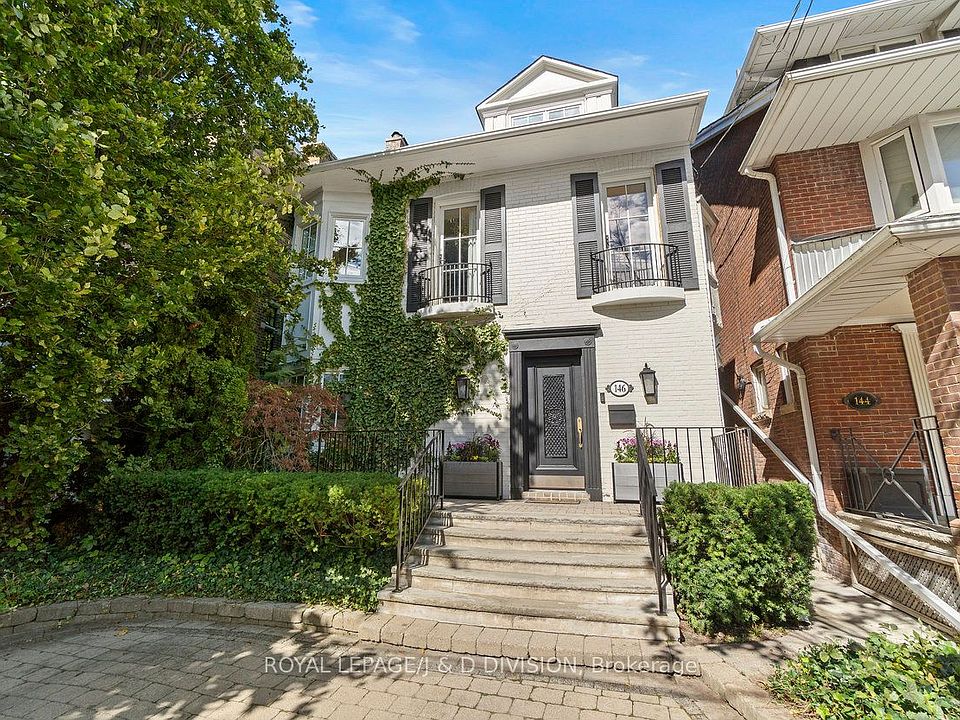 Located in the heart of Deer Park, 146 Balmoral Avenue is a rare blend of timeless sophistication and modern comfort. This detached four-bedroom residence was completely reimagined with exceptional craftsmanship, offering approximately 2,305 square feet above grade plus a finished lower level, for a total of 3,407 square feet of beautifully designed living space. The main floor flows through elegant formal rooms with statuario marble fireplaces and white oak hardwood floors, into a custom chef's kitchen featuring La Cornue, Thermador, and Miele appliances. Statuario marble counters pair beautifully with the clean-lined backsplash and bespoke cabinetry, creating a space that is both functional and refined. The adjoining family room is warm and inviting, with radiant-heated floors and French doors that open to a private, landscaped garden with a nearly maintenance-free turf, a children's play area with climbing wall, sandbox, and clubhouse, and a large garden shed surrounded by mature trees. Upstairs, the primary suite offers a wood-burning fireplace, dressing room, and spa-inspired ensuite, while French doors from the bedroom lead to a peaceful treetop terrace. A second bedroom and a five-piece main bath complete this level, with two additional bedrooms above. The lower level includes a recreation room, powder room, laundry, and storage. With legal front-pad parking, this home is steps to top schools, parks, transit, and Yonge Street amenities.