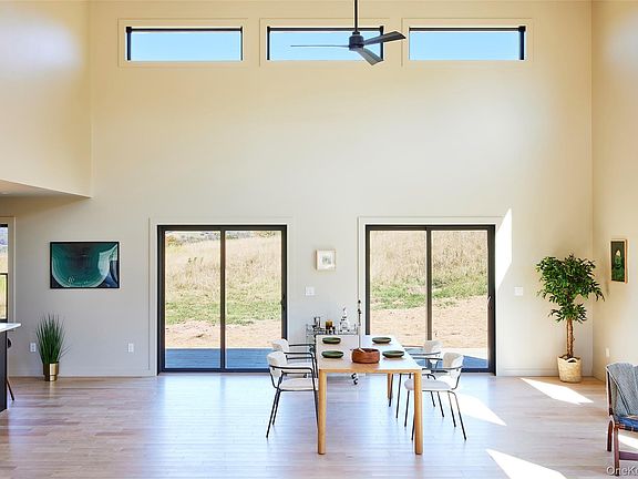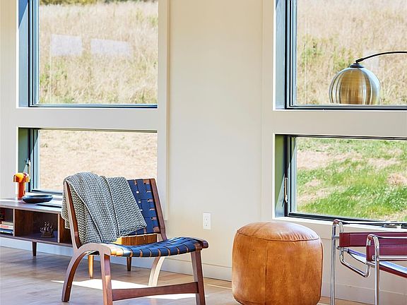 Stepping inside, soaring ceilings and expansive picture windows flood the space with light and air, seamlessly blending the indoors with the sweeping meadow and hillside vistas. The thoughtful layout provides plenty of room for unwinding and entertaining, with versatile areas designed for connection. Exquisite white oak flooring runs throughout, paired with sleek modern fixtures and finishes that elevate every corner.