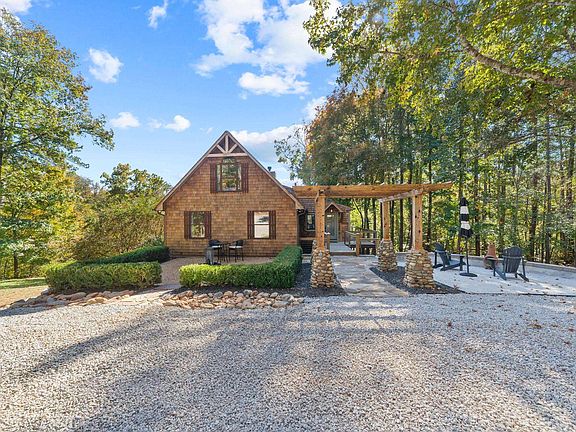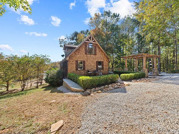 Welcome to Two Canoe Lodge! This magnificent and unique property is nestled in the trees and truly provides a setting that will make you feel like you have arrived in the mountains, while still being a lake front property on Lake Sinclair! This home offers 7.15 acres, and a long private driveway that takes you away from the stress of everyday life! When you arrive at the home, you are greeted by a cedar shake modified A-Frame with a detached 24x36 two car garage/workshop! This home has a total of 4 bedrooms and 3.5 baths, with the primary bedroom on the main floor! The kitchen has been meticulously redesigned and here you will find pella crank windows providing views of the lake while you cook, a 48 inch Wolf gas range with four burners and a 24in double griddle, Cove dishwasher, Sub Zero built in fridge and a microwave drawer! For the cooks, there is also a walk-in pantry, custom granite countertops and an island overlooking the open concept living room/dining area. This space is adorned with exposed wood beams from the kitchen to the living room. The primary bedroom offers two closest, and a custom double vanity with quartz countertops and new custom lighting. Upstairs you will find a guest room with a private en suite bathroom, and walk in closet. As you make your way downstairs, you will find a family room with coffered ceilings, built in bunk beds, a step up private office/library with a safe room and two additional bedrooms and a full bath for your guests to enjoy their stay! There is an additional 635 square feet of heated/cooled living space over the two car detached garage! 240 feet of water frontage, a double boat house with two lifts and so much more to see at Two Canoe Lodge! New Pella sliding glass doors will be installed in the family room on 11/21. Don't miss out on this unique property, there aren't many like this on Lake Sinclair!