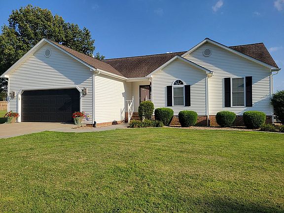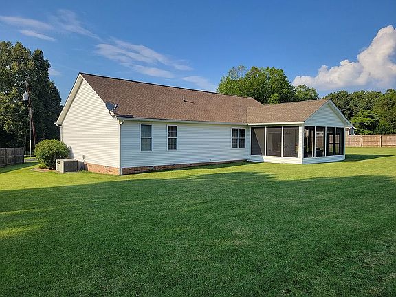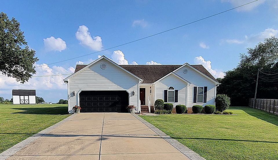 Looking for the perfect starter home, forever home or something in between? This home is for you. Located at the cul-de-sac of a quiet and small neighborhood right outside city limits. This home features a large living room open to the kitchen and dining room, 3 bedrooms, 2 bathrooms including a master suite with walk in closet, screened in back porch, sitting on nearly half an acre. Includes a portable building purchesed new in 2022 for additional storage.