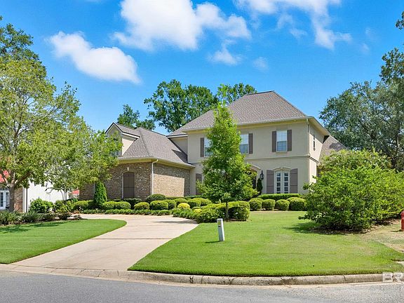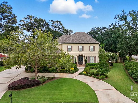 Welcome to this beautifully custom built corner lot home, by MD Price Construction, located on Rock Creeks 18th Green. This 4100 plus square foot, updated home offers luxury living at its finest with quartz counter tops, gourmet kitchen, gorgeous custom built entrance doors and fabulous built ins throughout including a wet bar, coffee bar, and private desk alcove. Spacious dining room and study with custom built ins from floor to ceiling invite you into a fabulous, well maintained home. Two bedrooms on main level with large primary suite, 2 walk in closets and remodeled primary bath. Laundry room offers 2 entrances and custom cabinetry. Fireplace and custom book shelves add to the warmth of this open floor plan connecting kitchen, breakfast dining, and family room. Family room opens to a lovely screened in porch perfect for morning coffee. The large outdoor patio overlooking the 18th hole, boasts a stone fireplace and lush landscape. The iron and wood fences with added landscape provide privacy and beauty. Upstairs you will find a grand den, 2 large bedrooms, safe room, separate vanities spaces with Jack and Jill bath. Incredible storage throughout home with walk in attic space over 3 car garage. Roof 2018. Interior paint 2019. Kitchen remodel 2025. Bathroom remodel 2024. HVAC 2022. Generator 2020. Elastamatic/painting and seal of stucco 2020. Custom window treatments and plantations shutters throughout home. Termite coverage. Security Cam System 2021. Neighborhood amenities include clubhouse, golf course, pool. Minutes from downtown Fairhope and Mobile Bay. Easily accessible to I10. Move in ready. Nothing left to do! Buyer to verify all information during due diligence.