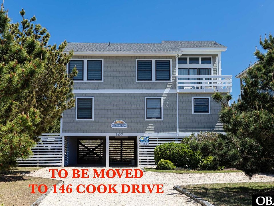 Here’s your chance to own a home in Duck Village for just $300,000. This coastal cottage is being offered to be moved and relocated to a semi-oceanfront lot just steps from the beach. The lot is listed at $1,199,000, and the combined package—home and lot—is offered at $1,499,000, placing the home’s value at just $300K. The home itself is thoughtfully designed with space for everyone. The ground level includes a dry entry, washer and dryer, and a covered landing with a porch swing. On the mid level, you’ll find an open-concept kitchen, living, and dining area, a king en suite with a jetted tub and large walk-in shower, a queen bedroom, and a full hall bath. The top level features a queen bedroom, a bedroom with two full beds, a den, and another full bath. All bathrooms are outfitted with large, glass-door walk-in showers. Enjoy the dune-top deck, the smell of the salt air, and time spent with friends and family in a location that puts you just steps from the beach. A site plan on file confirms the relocated home can accommodate a future private pool (not included). From this ideal location in the heart of Duck, you’ll be able to walk to your favorite restaurants, shops, and the town’s scenic boardwalk.