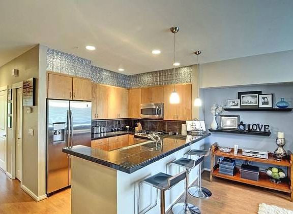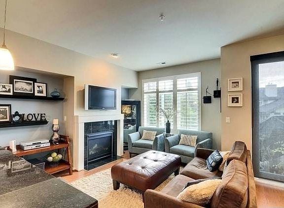 This Issaquah townhouse blends the convenience of affordable neighborhood amenities with the modern architecture of an urban escape. Over 1600 SF with 2 generous bedrooms plus lower level den and 2.75 baths. Upscale kitchen boasting granite tile counters, eating/serving bar and chic cabinetry. Living area with gas Fp, glass door to deck and high ceilings. Master bedroom features en-suite bath with full shower. Second upstairs bedroom is also large. Lofted library/office area. Small Garden space.
